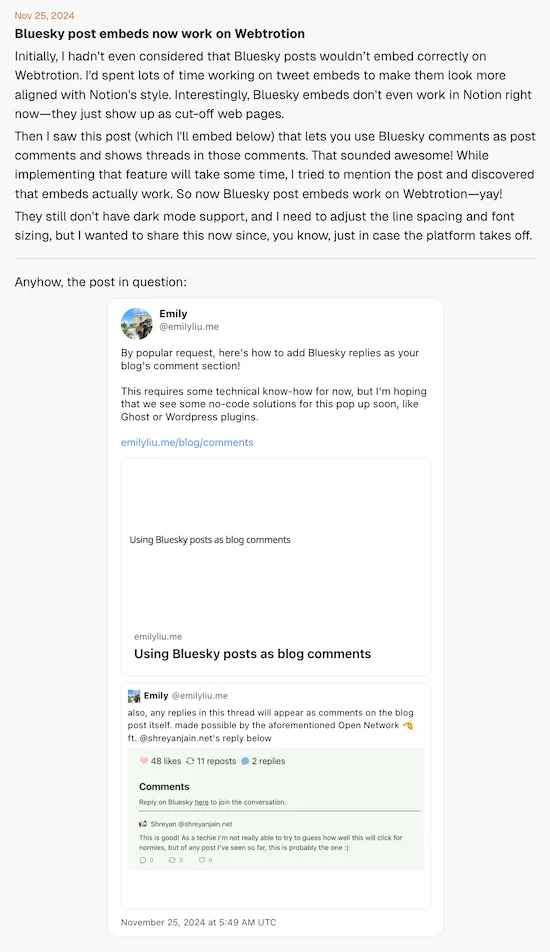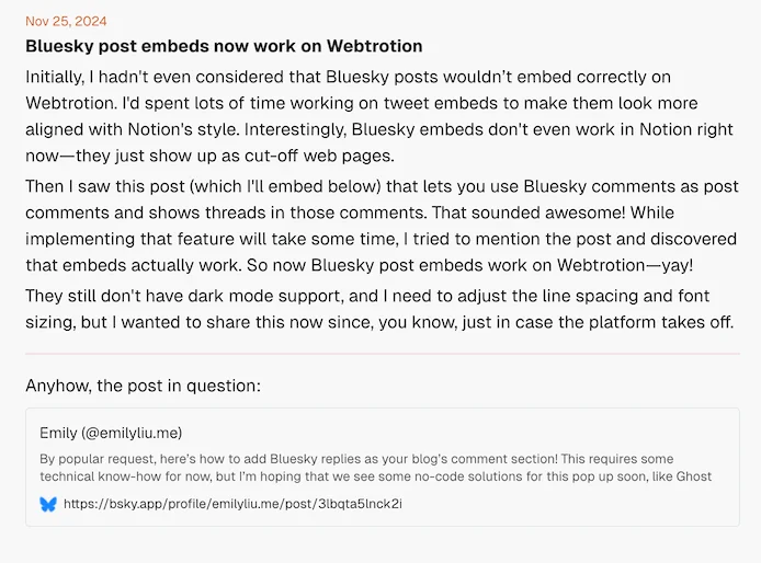 I think one of the biggest reasons why I'm still maintaining this whole setup instead of using one of the prevalent Notion-to-website converters out there is: no one else is going to introduce and add components at the rate that I need them, and Notion has been shipping fast lately. I think this gives me a good idea of what is available, what can be done versus what can’t be done.