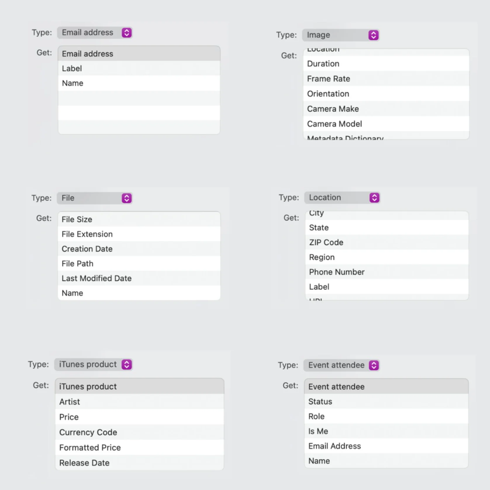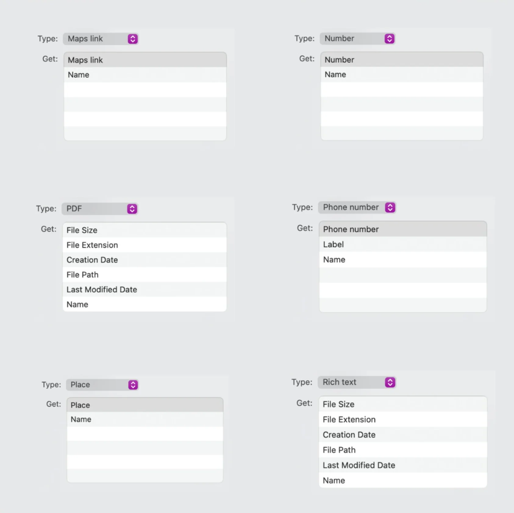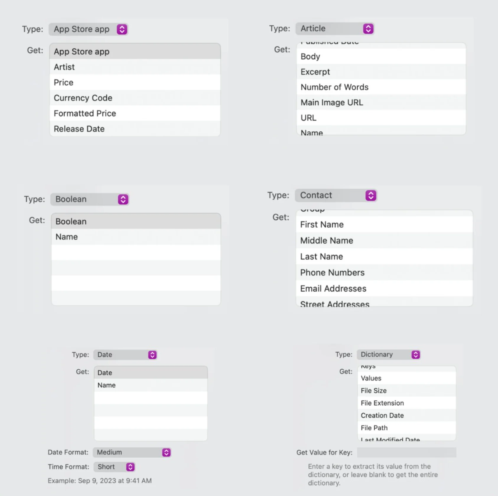 Shortcuts also comes with an inbuilt set of objects. Each of these objects have pre-defined properties: