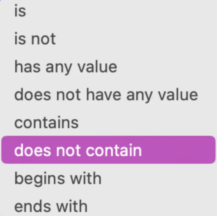 (e) ContainsShortcuts has TWO: EQUALS/Not EQUALS and CONTAINS/Not CONTAINS.