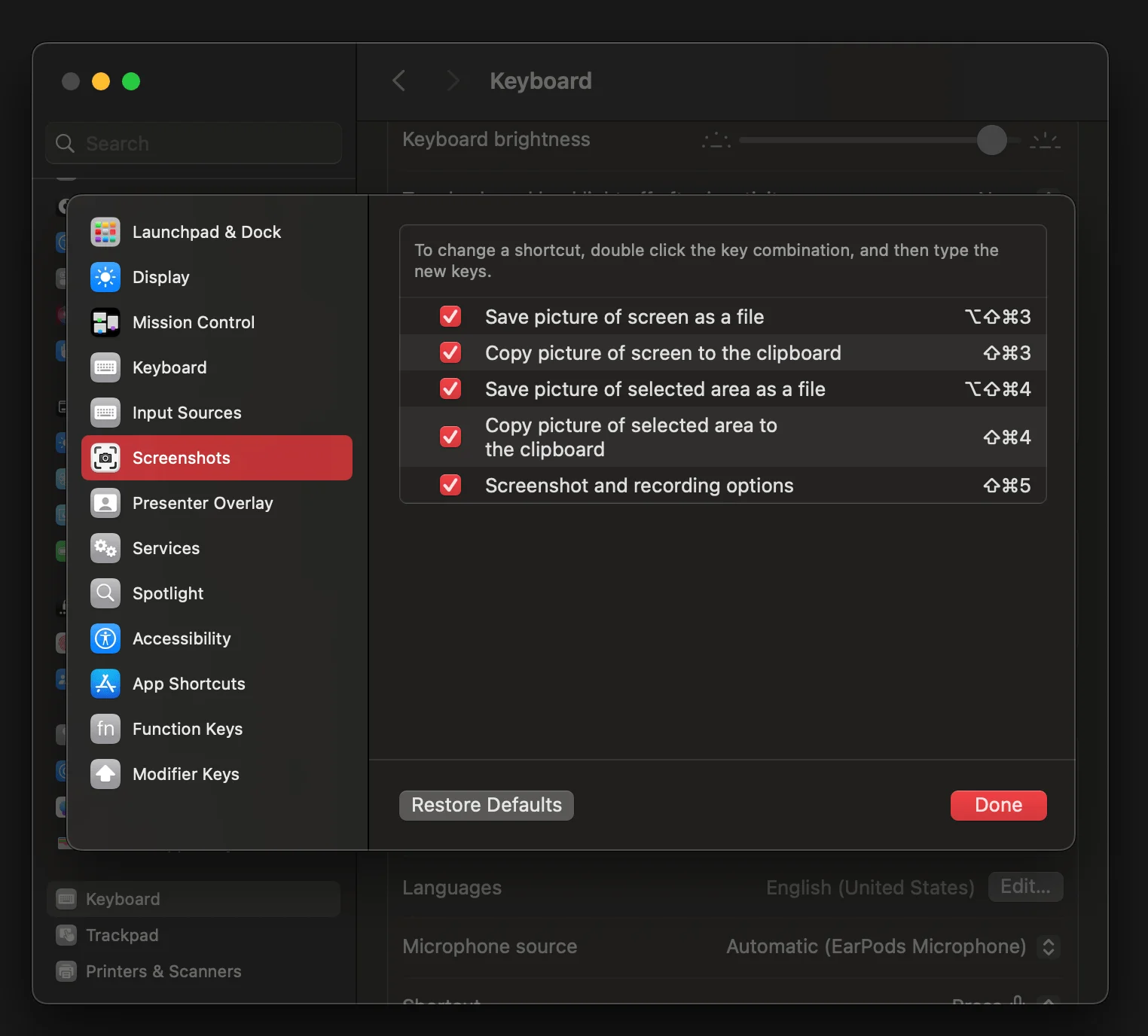 One of the first things I change are the shortcuts for screenshot. I switch around the shortcut for copy to clipboard and save to file, because often, I am just pasting it somewhere, and I just need it copied to clipboard. An extra tip here courtesy ProperHonestTech, if you use ⌘ + ⇧ + 5 to take a screenshot for a window, it auto adds a shadow around it. You can avoid it by pressing the ⌥ key before you click the Capture button.