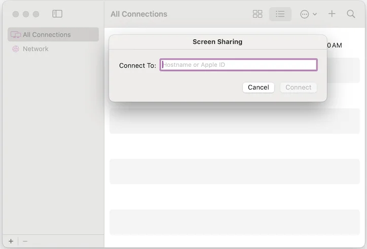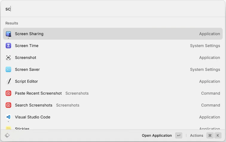 Screensharing is a hidden application. It doesn’t show up on your Application or Launchpad. You need to open screensharing app using Raycast or Spotlight.