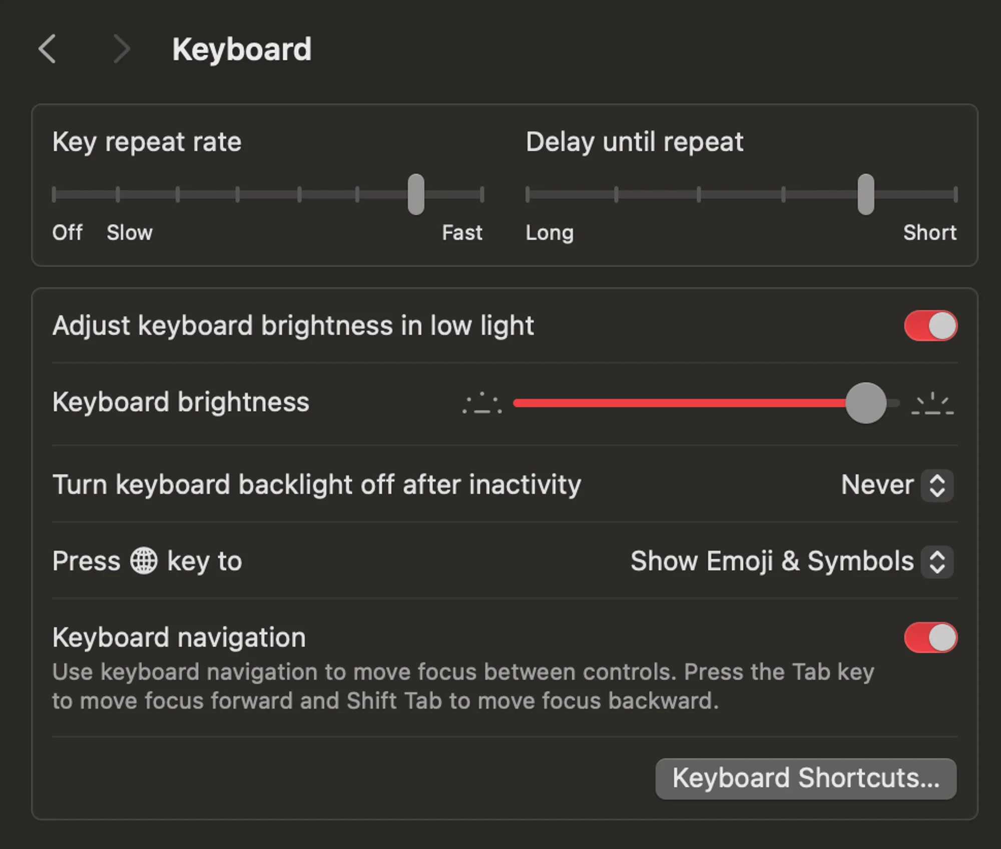 ⌥ + ⇧ + Keyboard/Display Brightness Up/Down: Adjust the display brightness in smaller steps. Add the Control (^) key to this shortcut to make the adjustment on your external display, if supported by your display. -