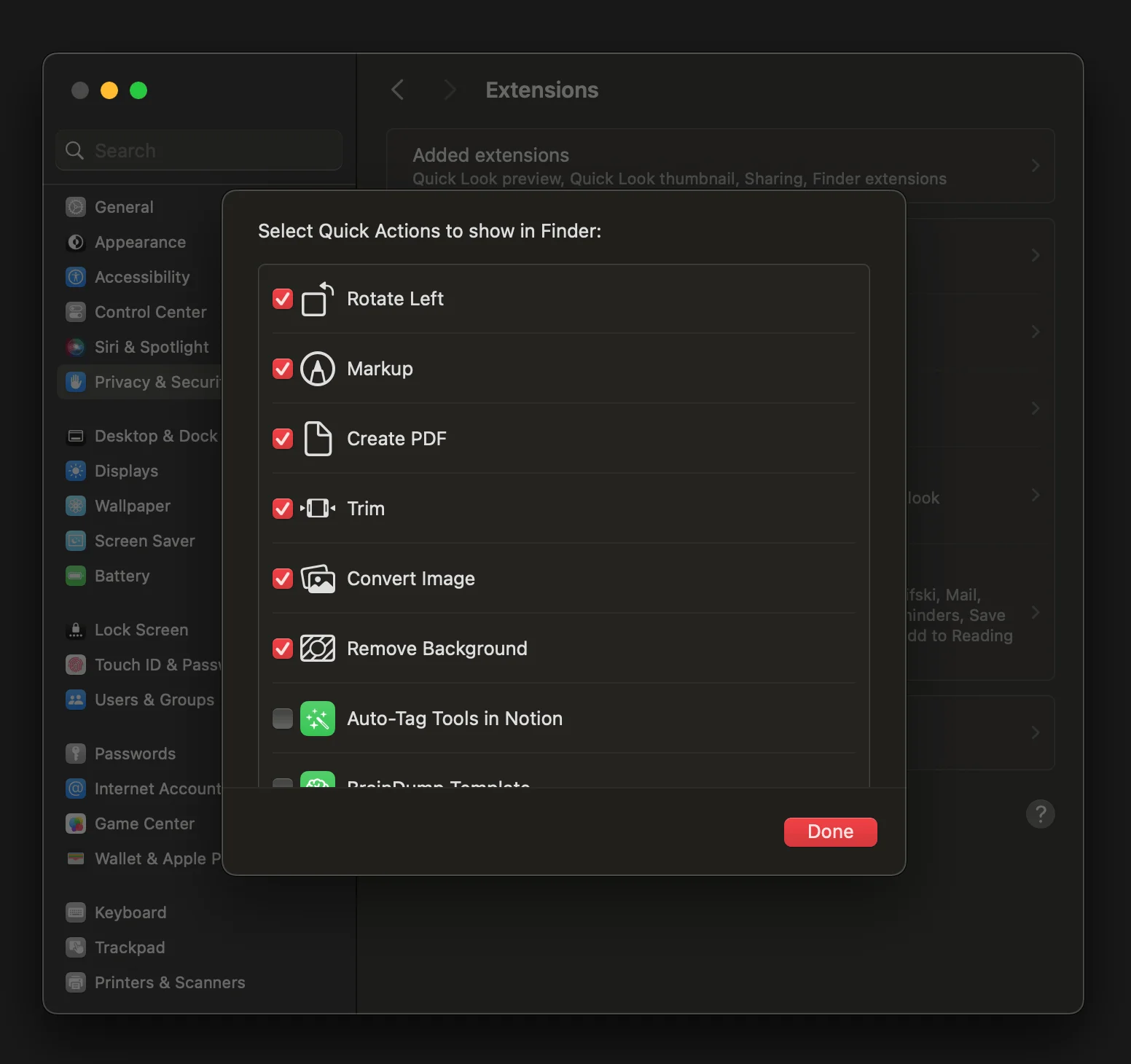 Did you know that apple has an inbuilt option to convert images, remove background, trim videos and create pdfs? Yup. You can turn them on in Quick Actions in the Extensions section.