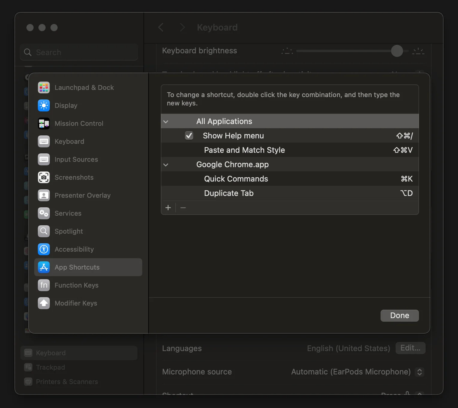 Want to change keyboard shortcuts for any menu options? For example Duplicate Tab still does not have a shortcut in Google Chrome. You can set it under Keyboard Shortcuts, on a global or per app basis.