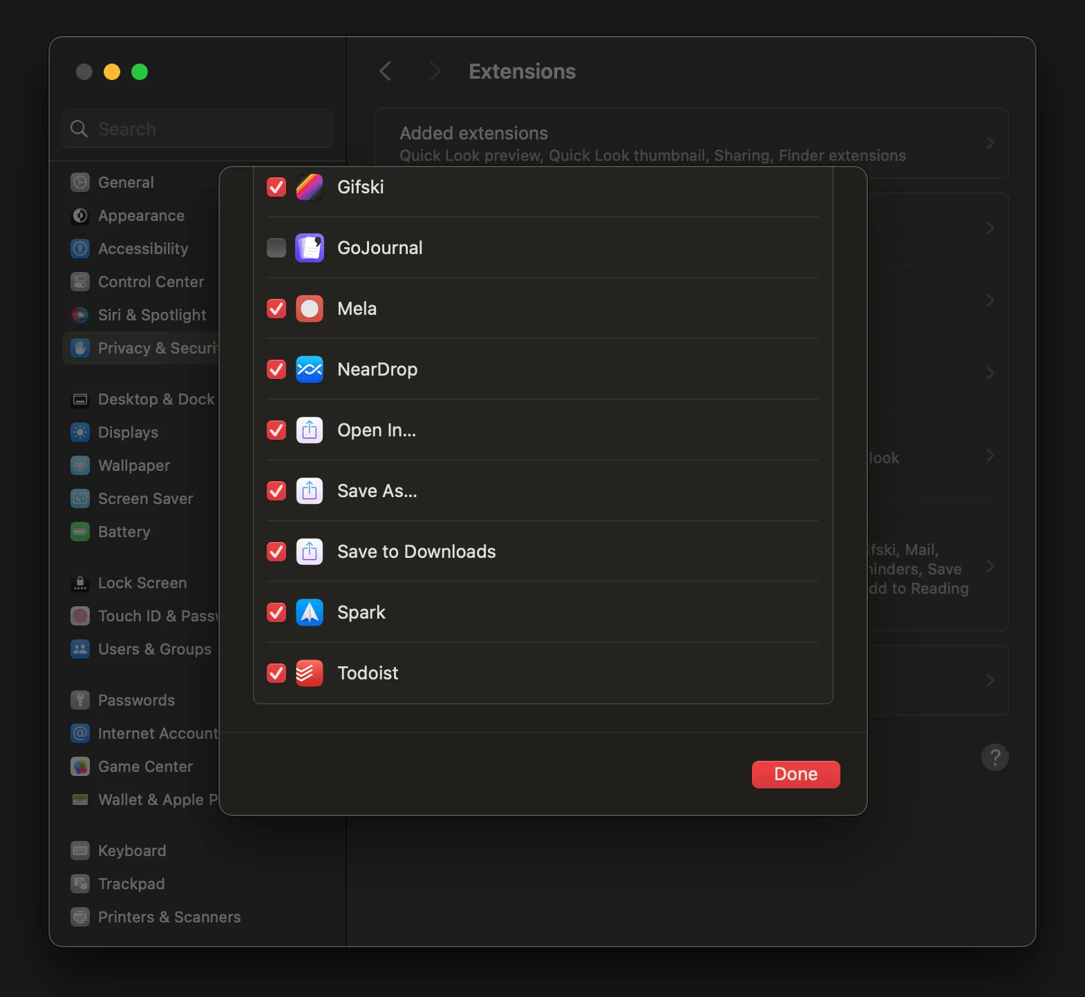 Share extensions can be used by in-built and installed apps. One of the main ones that adds more to this is — Neardrop, that allows you to send files like Airdrop to android phones. This is how, for example, Mela adds the extension to the share menu.