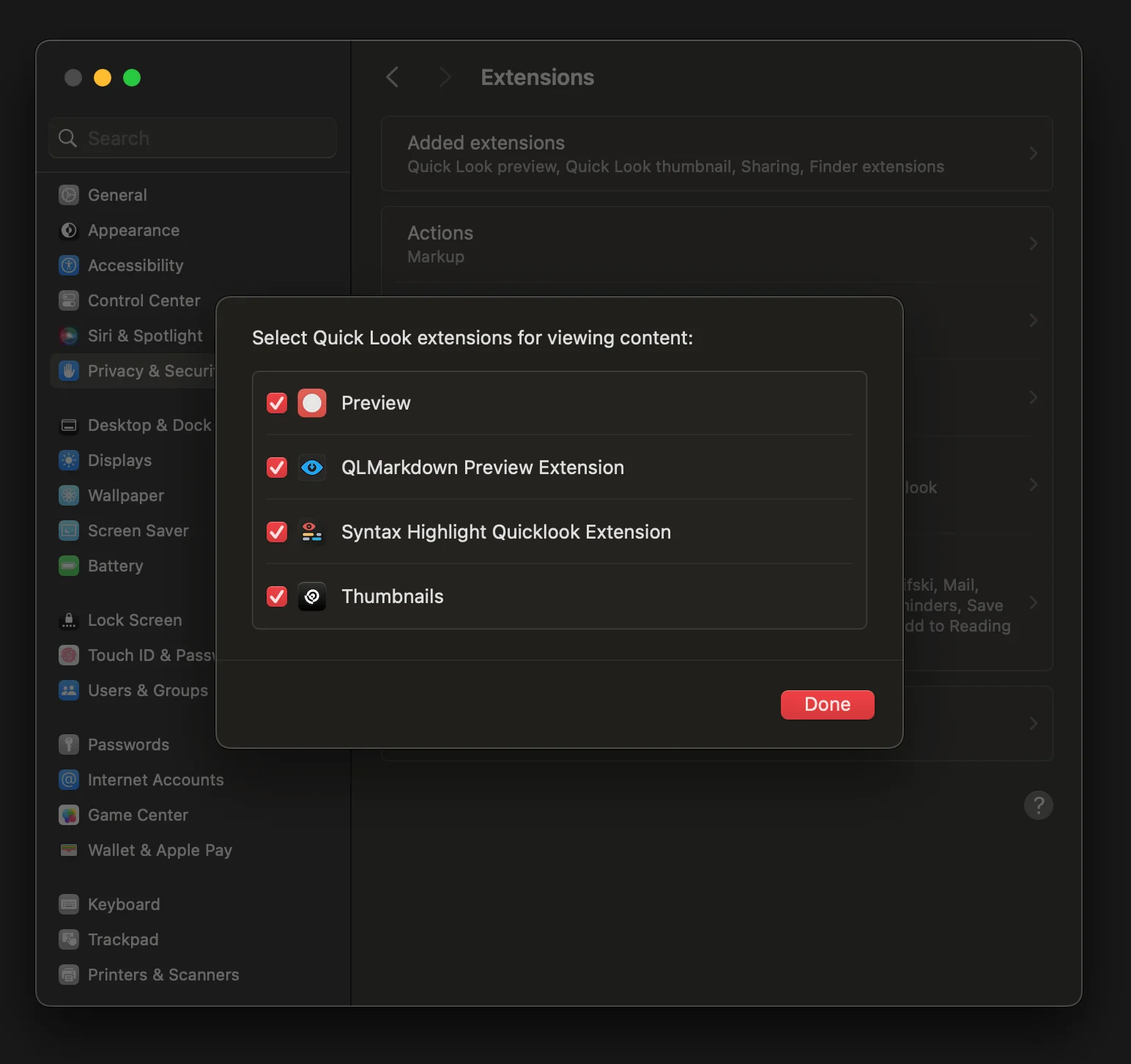 Did you know that quick look options can be extended? For example, the two apps I mentioned above show a better preview of markdown files or of code files, using syntax highlighting.