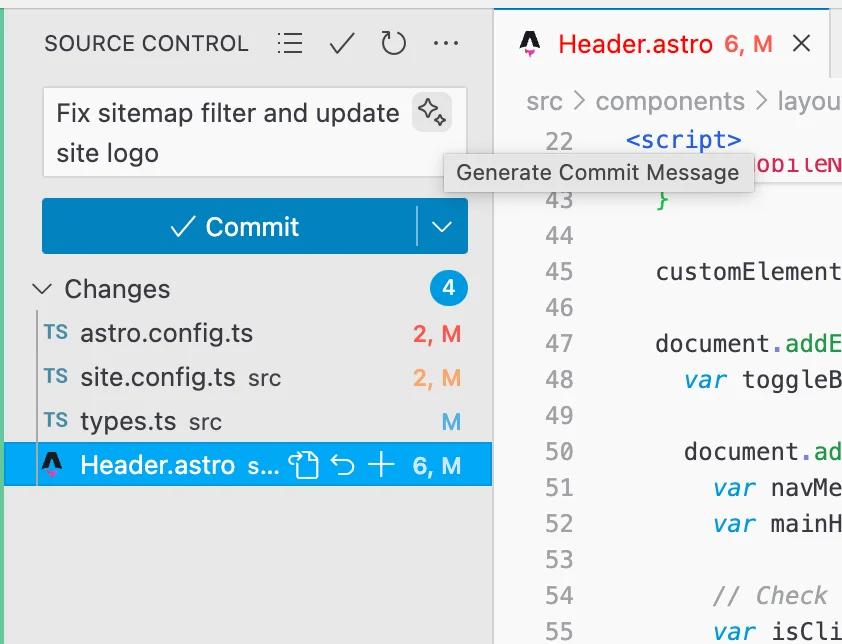 If my repo has any commit message other than "huh?", "what", "done", "commit", it is because of this tiny lifesaver by @code. I don't even know where it is coming from (Copilot, internal, extension) -- but it has made things a lot easier!