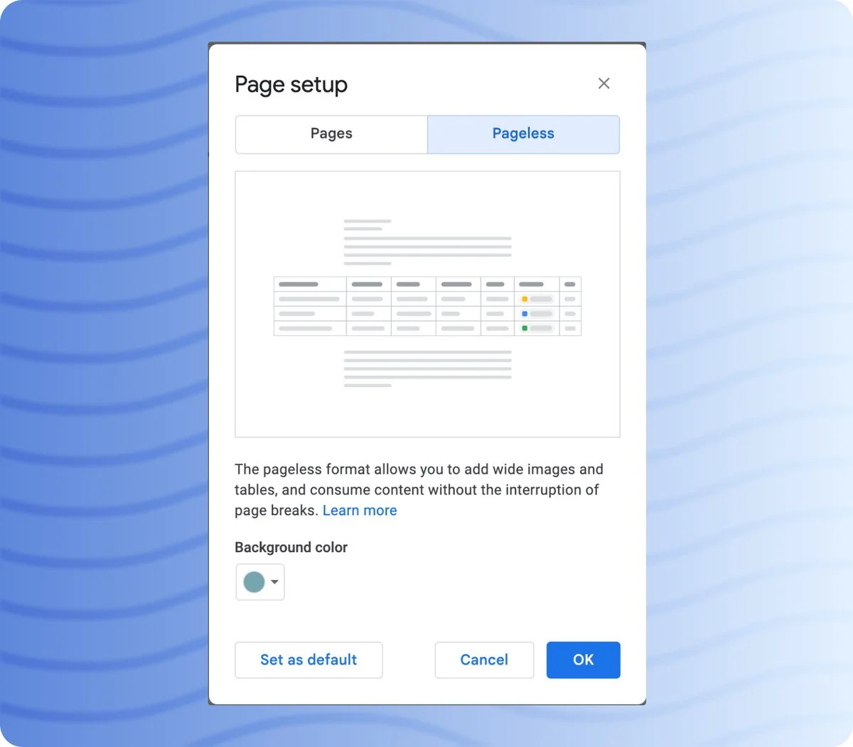 Pageless docs. It is instead meant to render a beautiful document on-screen instead of focussing on margins/print layouts.