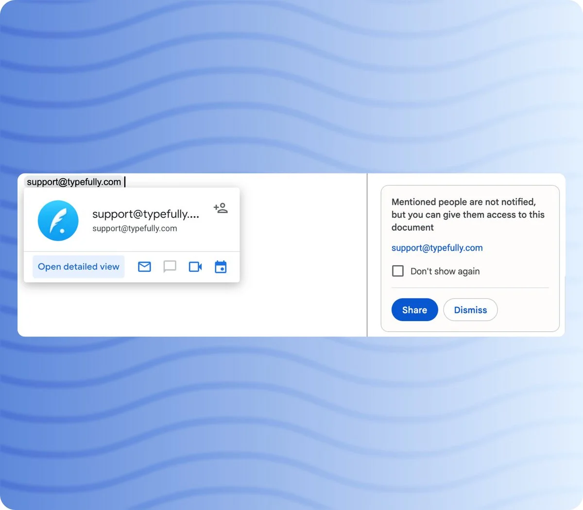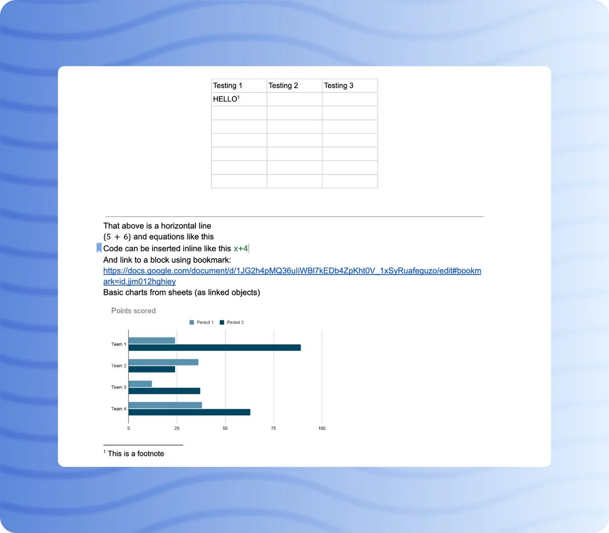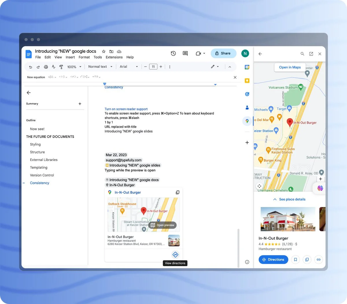 For example, email draft, where you can draft a complete email in the doc, and then send it through gmail.