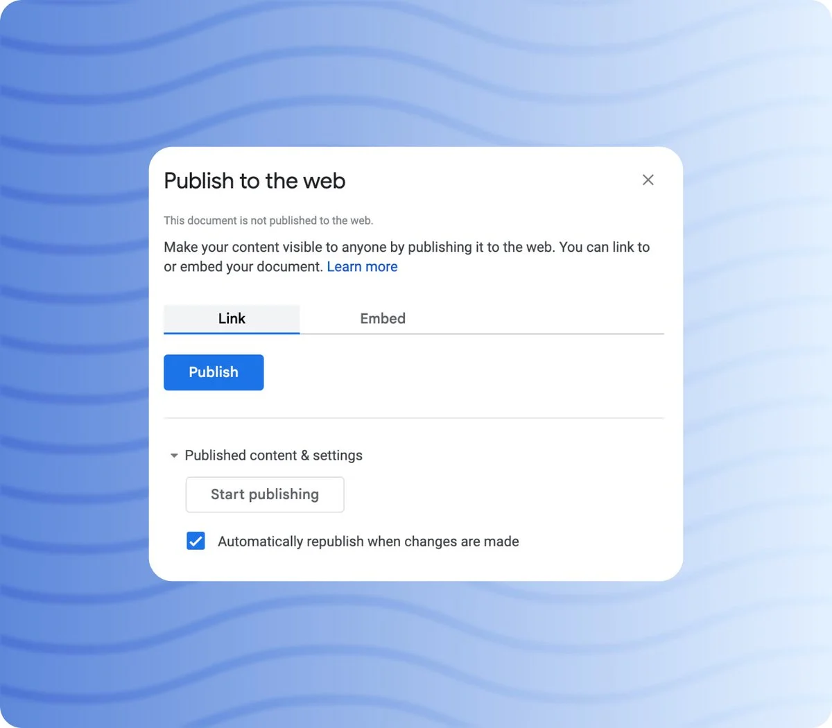 You can publish your document to web (for free) AND embed them (unlike notion docs). You can decide whether you want to manually update the document or update it as you go.