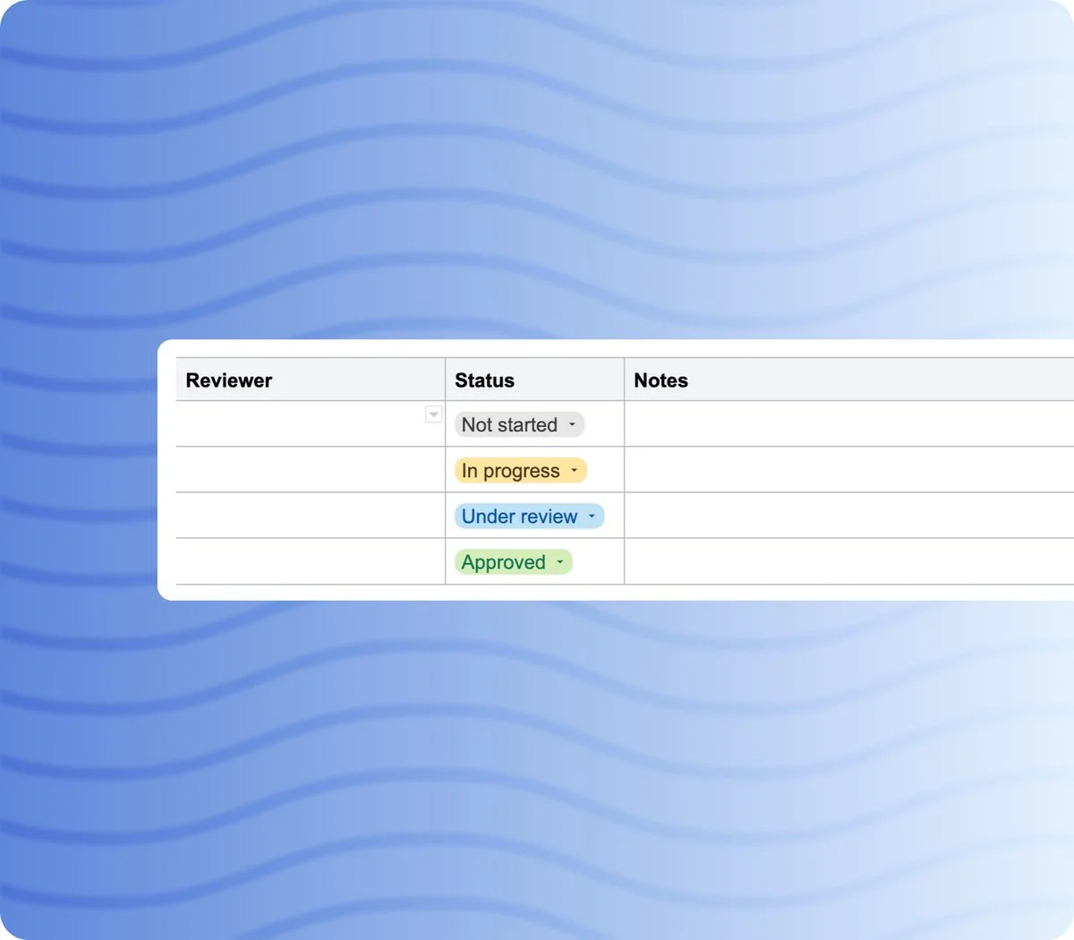 Other building blocks are just templates that include dropdowns and tables. For example, this is the review tracker building block.