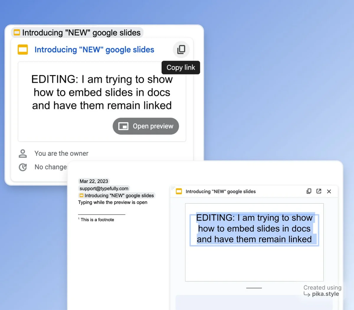 - Open preview to have a persistent modal on side, which doesn't automatically close when you are typing. You can also select content from preview.