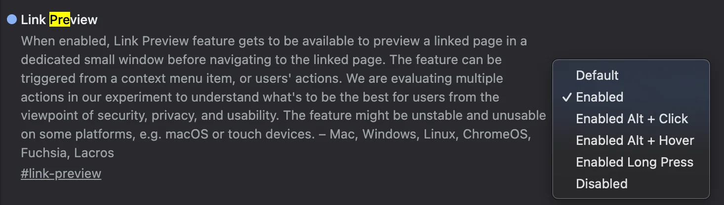 This is what the native Chrome link previews look like. They are basically a headless window, always on bottom right, if you click on them you open the site on a new tab. Not a huge fan at the moment.