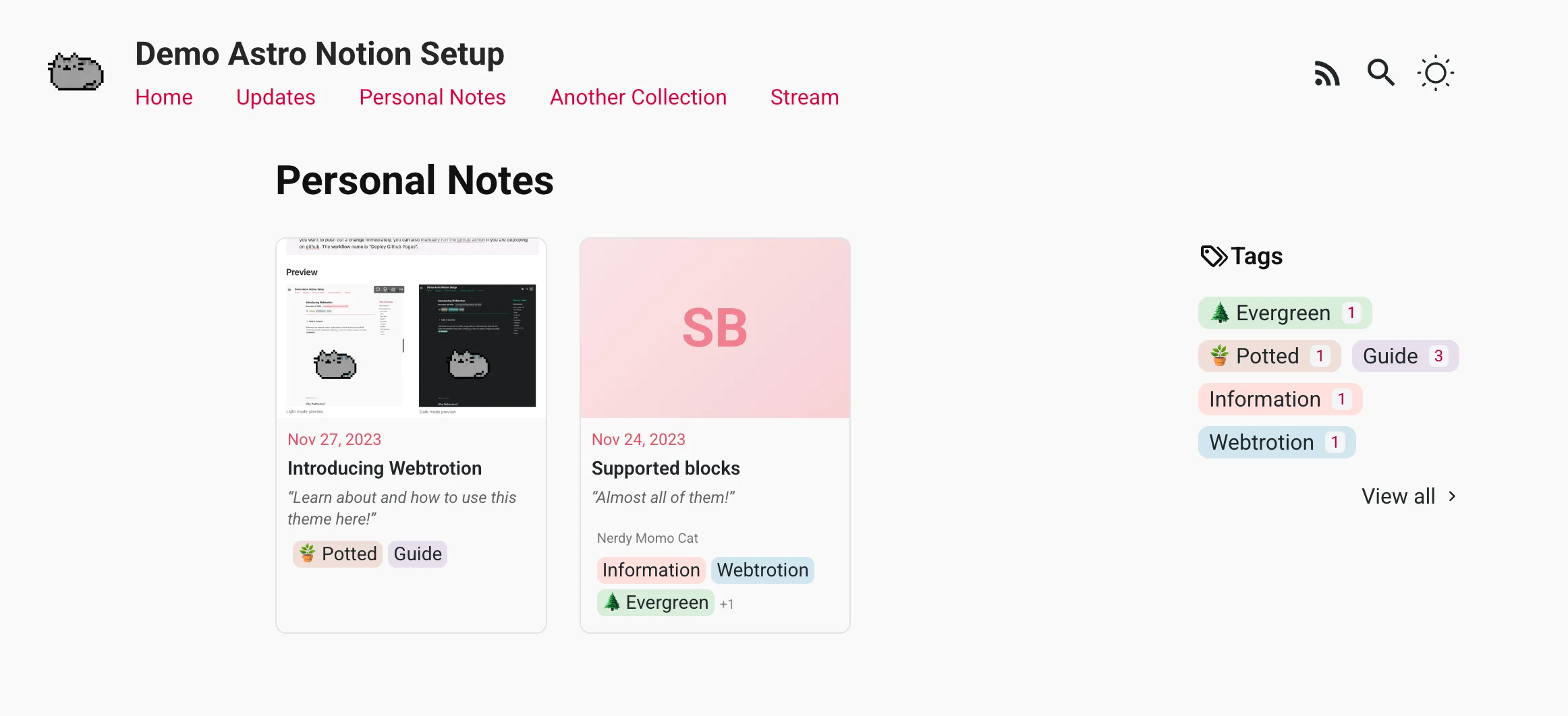 Notion icons are now cached: Before this, I was just linking out to Notion's page for default SVG icons, which meant the browser had to make external network requests to Notion's servers every time someone loaded a page with icons. Now I'm actually downloading and caching them locally during the build, so if you use the same icon across multiple posts, it only gets fetched once and then reused everywhere from your own domain. This shaves off a bunch of network requests for visitors and makes page loads faster, especially if you have a lot of pages with a lot of icons.